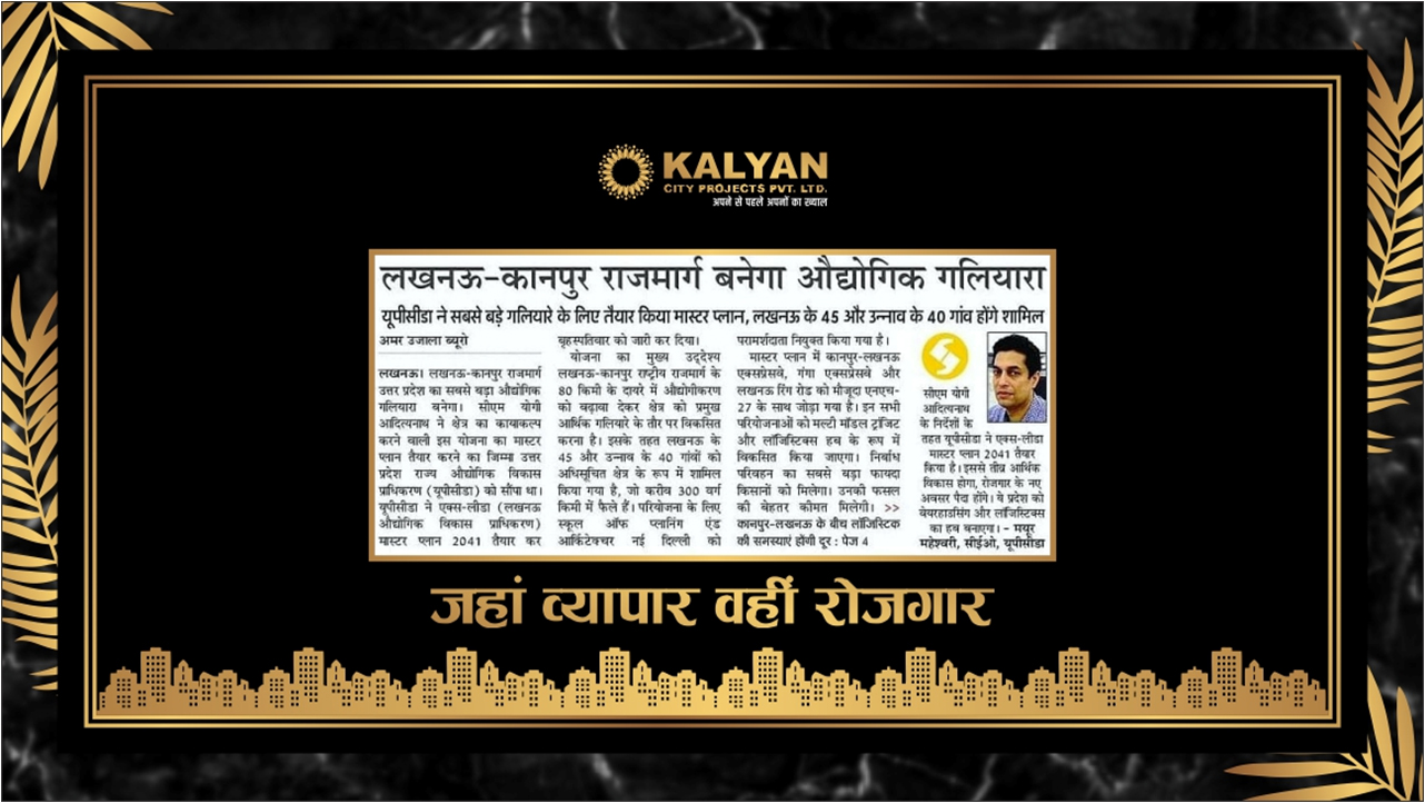 Kalyan City is situated at Kanpur Road - Lucknow is a dream come true which brings your world closer at an affordable cost. We bring you close to the capital city of Lucknow at a fractional cost. Be a proud owner of an Independent Freehold plot of your liking in a fully planed housing project with uniquely designed road, Recreational Parks, School, Hospital & Drainage system We bring your world closer to the capital city of Lucknow at a fractional cost. Live and be a part of an integrated Housing Project Kanpur Road - Lucknow.